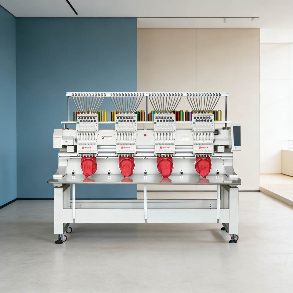 Máquina de Bordar Computarizada Industrial China de Gran Área (45*40cm) MJS1204, 12 Agujas, 4 Cabezales, Automática para Gorras y Camisetas - Precio