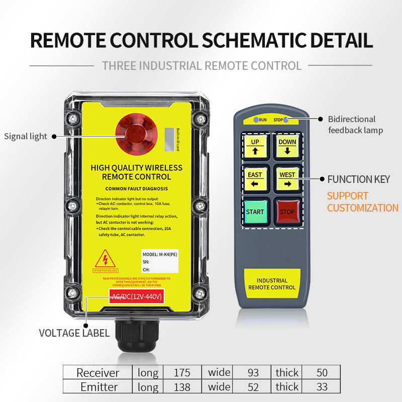Grúa de Radio Industrial de 4 botones de una sola velocidad, Control remoto inalámbrico, polipasto eléctrico impermeable, Material de Metal plástico, 2 unidades