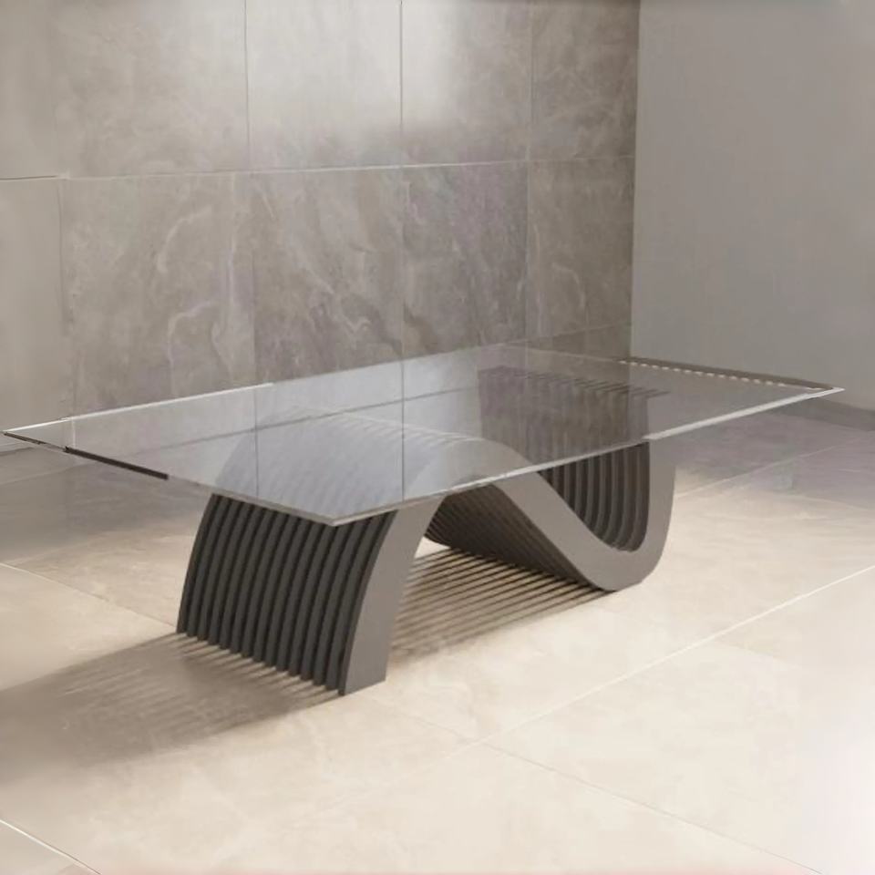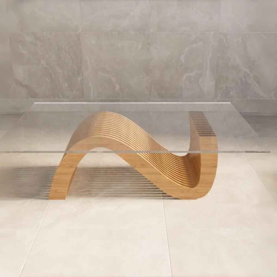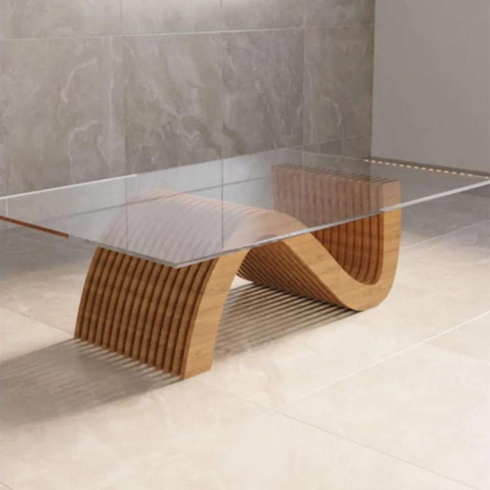 Mesa de Centro ML-CT06 de Diseño Moderno en Forma de S con Tapa de Vidrio y Madera Ecológica para Sala de Estar, Hotel u Hogar