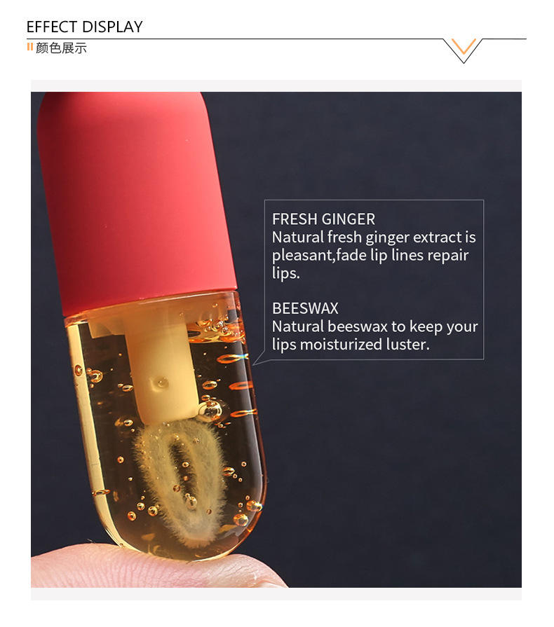 Brillo labial voluminizador de menta y jengibre OEM/ODM personalizado MLM, mini cápsula líquida, ligero y nutritivo, al por mayor, aceite labial de belleza pura.