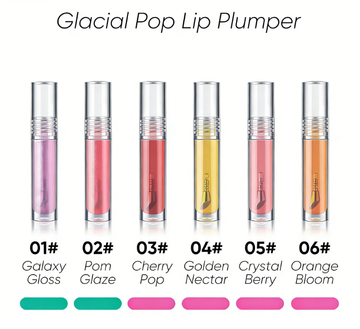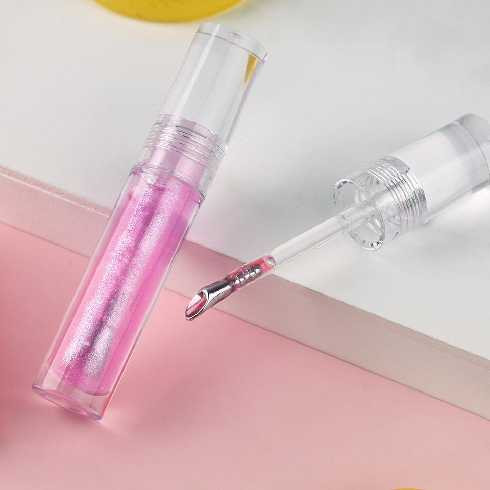 Brillo Labial Personalizable MLM con Efecto Hielo, Voluminizador, Translúcido e Hidratante, en Tubo Redondo de Aleación de Zinc