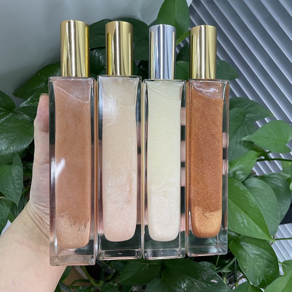 Aceite Corporal Brillante a Base de Agua MLM OEM ODM, 100 ml, Cilindro con Tapa Dorada, Iluminador Líquido al por Mayor, Iluminador Corporal, Aclarador de Piel