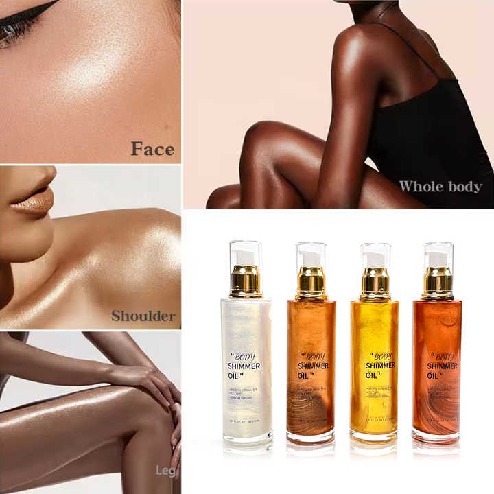 Aceite Corporal MLM de Marca Privada, 100 ml, con Tapa Dorada, Brillo Perlado Fino, Hidratante, Textura Suave, Absorción Rápida, Vegano