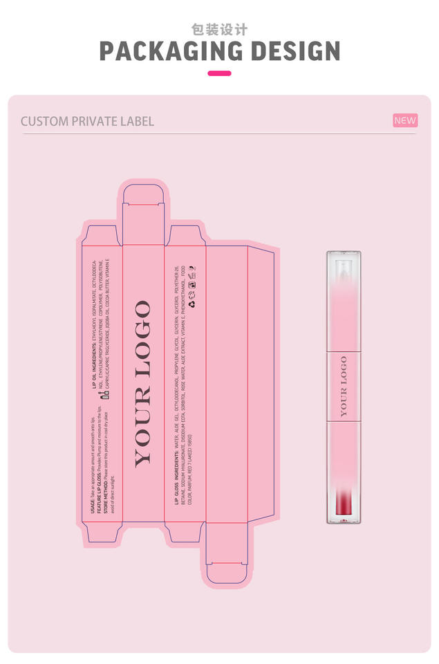Brillo labial personalizable MLM de doble cabezal, antiadherente, efecto niebla suave y alto brillo, aceite labial de larga duración, hidratante y voluminizador.