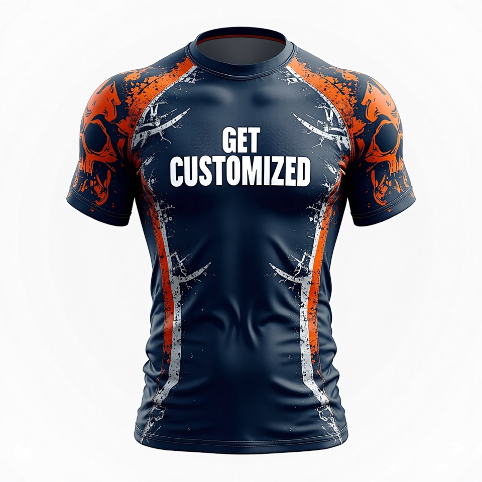 MMA personalizado Rash Guard desarrollado para atletas con compresión de control de humedad y mangas kimono de jiu jitsu