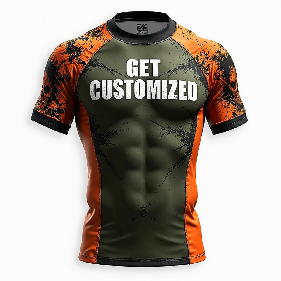 MMA Rash Guard Compression Fit para hombres y mujeres con mangas completas y cortas personalizadas y sublimación kimono de jiu jitsu