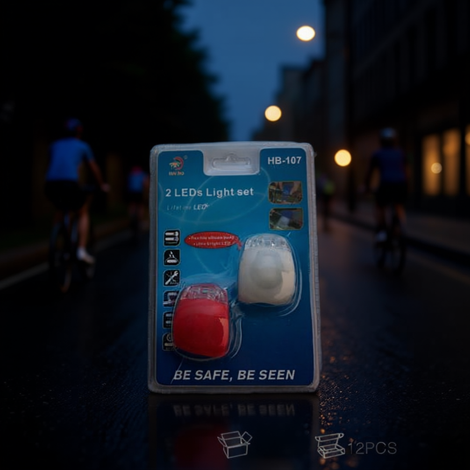 Juego de luces LED para bicicleta MNJ 2 HB107, luces delanteras y traseras, seguridad en ciclismo, 12 Uds.