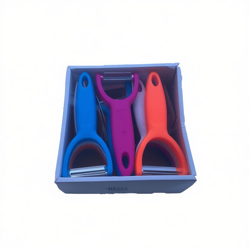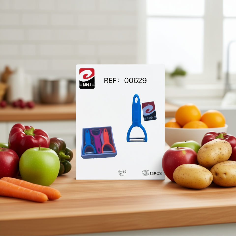 Juego de peladores manuales MNJ, 12 piezas, herramienta de cocina de plástico colorida, hoja de acero inoxidable, fácil de limpiar, para frutas y verduras, caja de 12 piezas