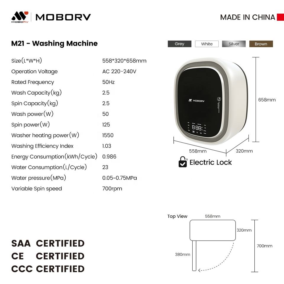 MOBORV Autocaravana RV Caravana Mini Lavadora Accesorio Vehículo Recreativo Mini Lavadora de Carga Frontal Automática Montada EN LA Pared