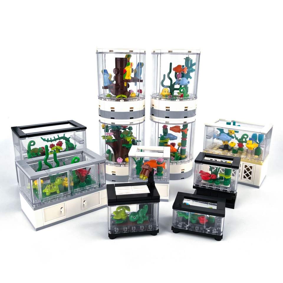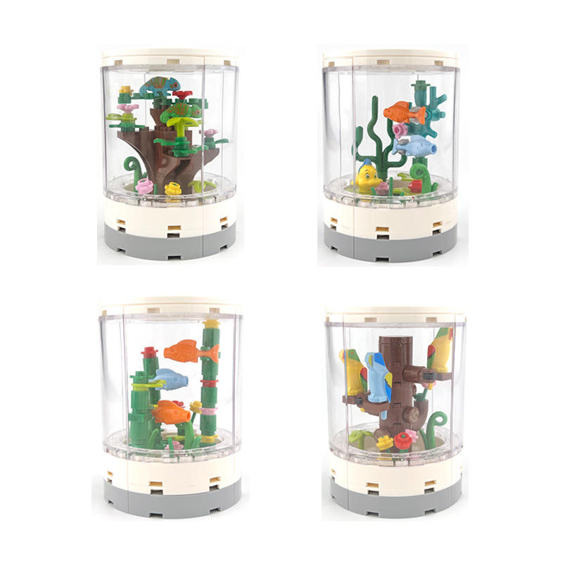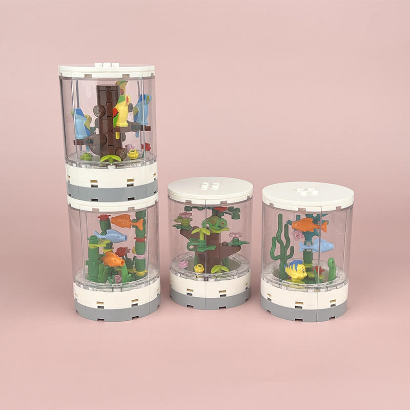 Bloques de Construcción MOC de Partículas Pequeñas, Juguete de Caja Redonda para Observar Peces, Escena Urbana, Decoración Interior Neutral para Sala de Estar