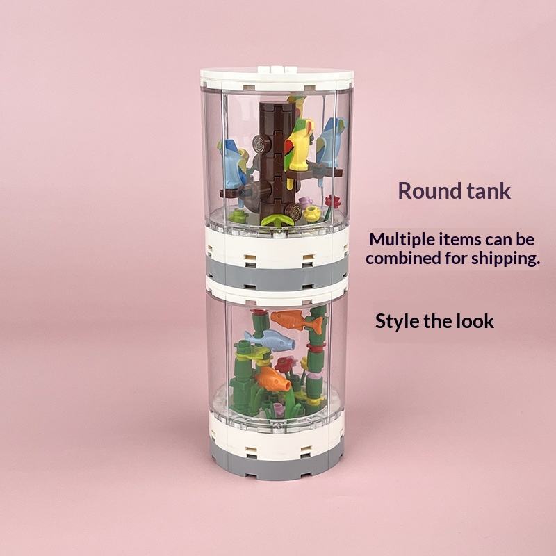Bloques de Construcción de Partículas Pequeñas MOC, Caja Redonda para Observación de Peces, Escena Urbana, Decoración Neutral para Sala de Estar, Adorno Interior