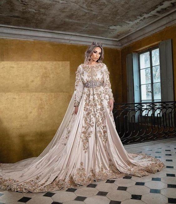 Vestido caftán de novia de diseño moderno, bordado elegante de DABKA, cuentas de cristal, trabajo de piedra de cristal para boda @ 2022