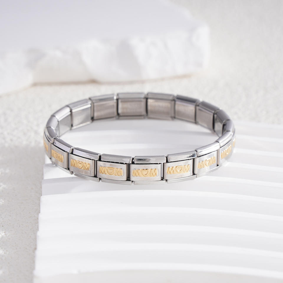 Pulsera Modular de Acero Inoxidable Serie MOM, Cubo con Letras Geométricas, Accesorio de Joyería para Mujer, Regalo
