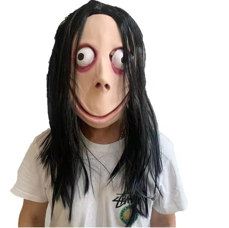 Máscara MOMO para Adultos, Máscara de Diablo de Terror con Pelo Largo, Disfraz de Terror, Decoración para Fiesta de Disfraces de Halloween, Accesorio W24-516