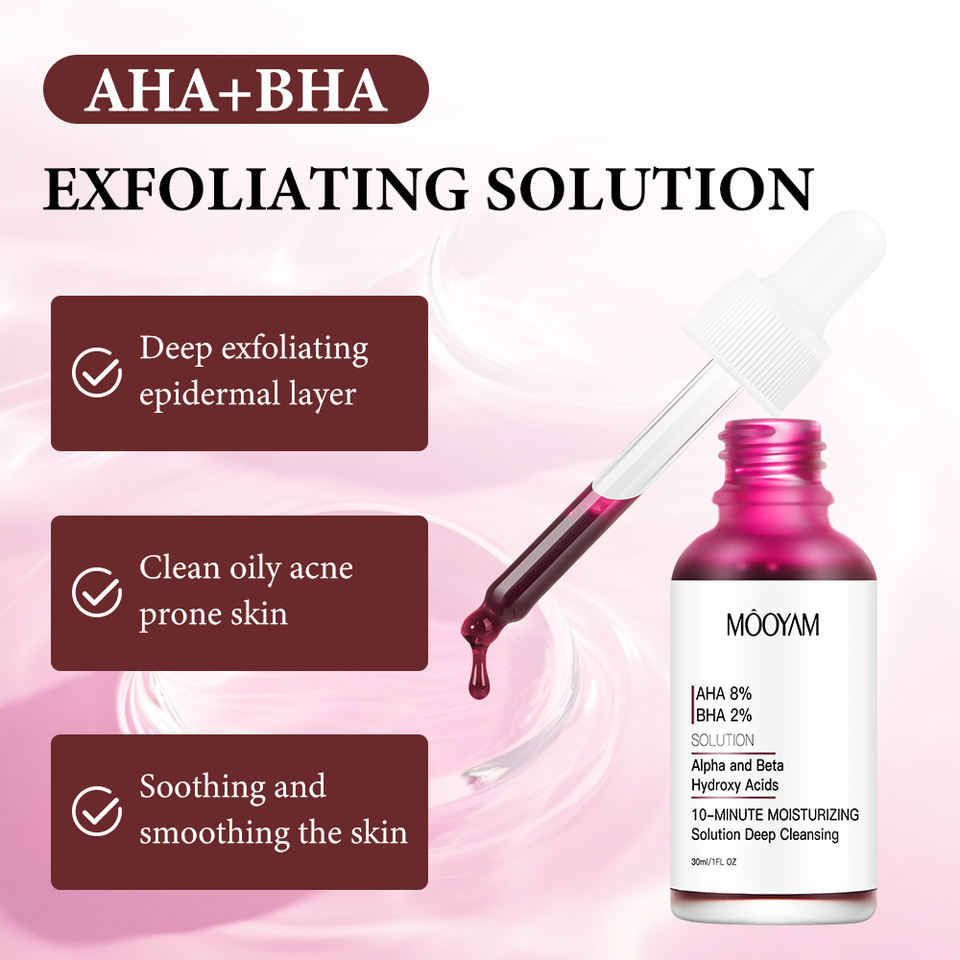 MOOYAM AHA 8% BHA 2% Solución de Suero Facial Hidroxiácidos Ácido Exfoliante Blanqueador Suero Esencial Antiarrugas