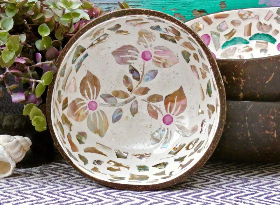 Tazón MOP Elaborado con un Único Trabajo de Incrustación de Conchas que Ofrece una Hermosa Presentación Decorativa