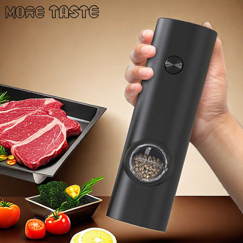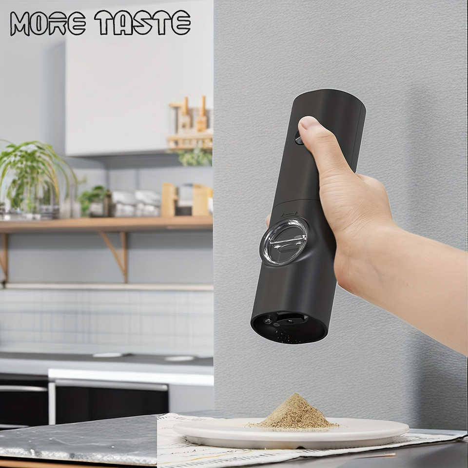 MOLINILLO ELÉCTRICO DE SAL Y PIMIENTA MORE TASTE, DE UN SOLO MANO, CON LUZ LED, GRUESOR AJUSTABLE, DE ACERO INOXIDABLE, RECARGABLE
