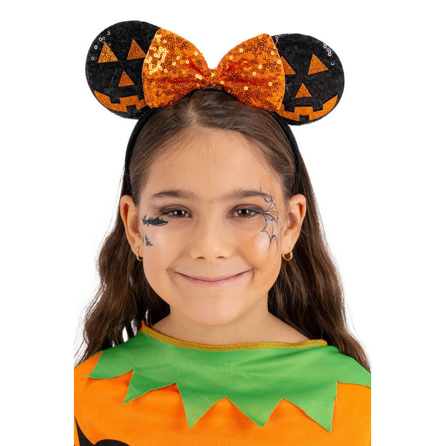 Diadema con diseño de calabaza y lazo naranja para niñas