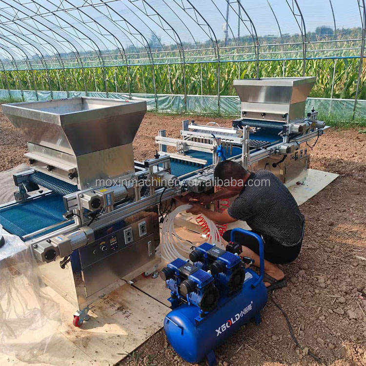 MOXIN máquina de bandeja de plántulas completamente automática flor semilla vegetal enchufe maceta 220V máquina de siembra de plántulas