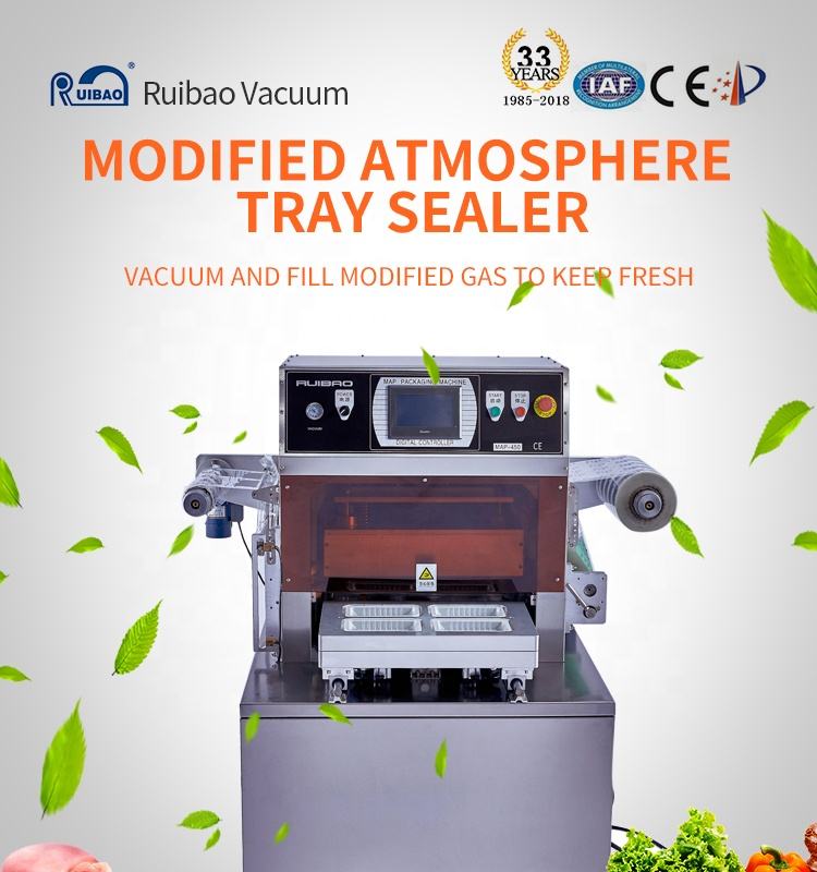 Máquina selladora de bandejas de atmósfera modificada MPA450 para envasar al vacío carne pescado comidas listas llenado de Gas nitrógeno bandejas MAP