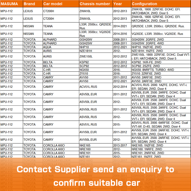 Bomba de Combustible MASUMA MPU-112 de Alto Flujo 12V 17040-3TA0C 23220-36100 Bomba de Combustible Universal para Automóviles Toyota