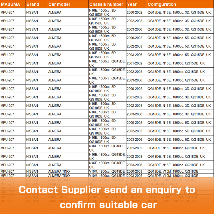MPU-207 MASUMA, Piezas de Bomba de Combustible para Sistemas de Motor de Automóvil, 17040-BR00A 17040-5M300 17040-BN800 17040-BN805 para NISSAN ALMERA TINO