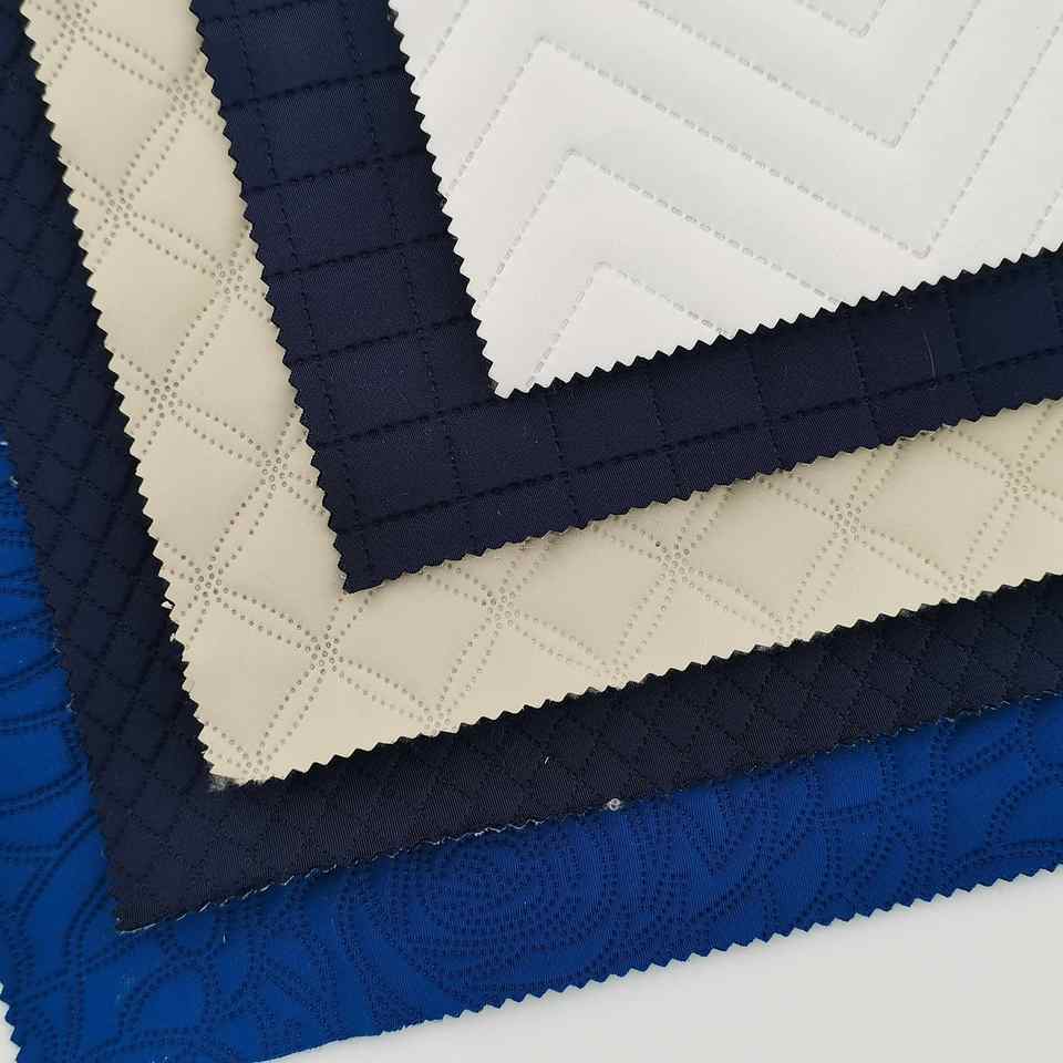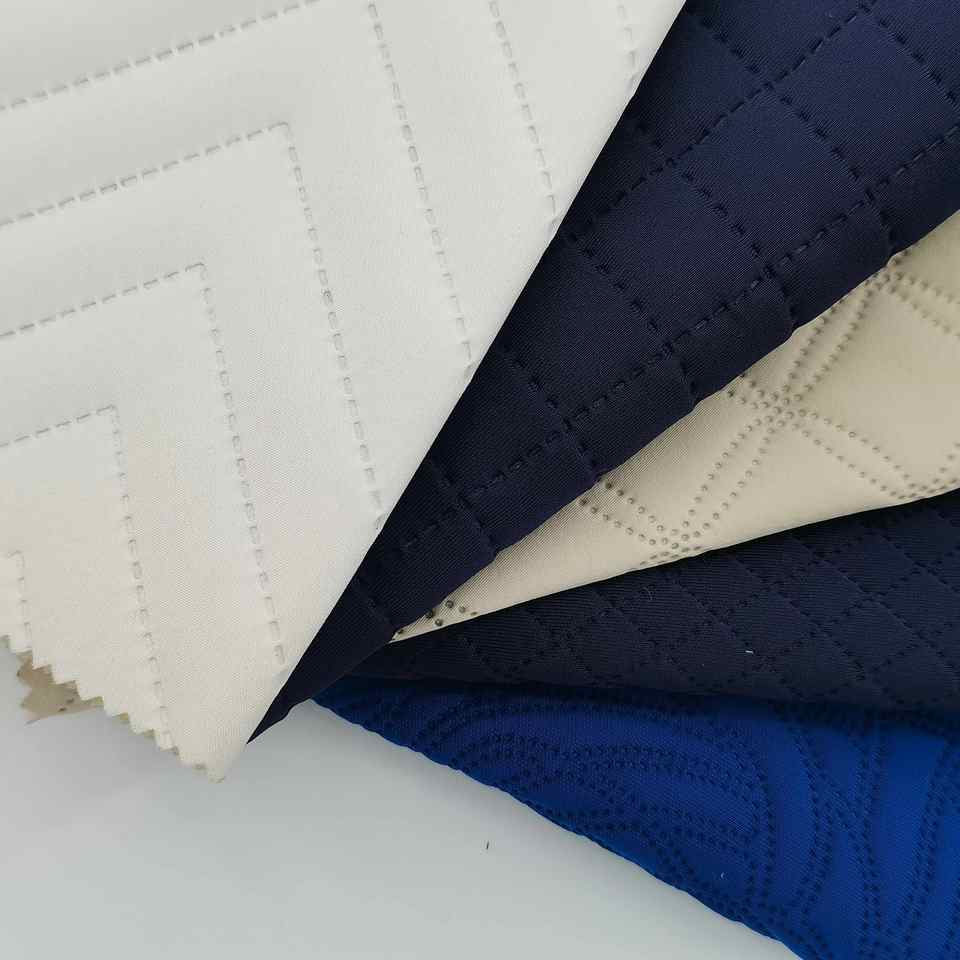 Tela de Forro Impermeable de Alta Calidad MQ, Diseño de Ondas en Color Beige, Acolchado Ultrasónico sin Costuras, para Ropa de Exterior