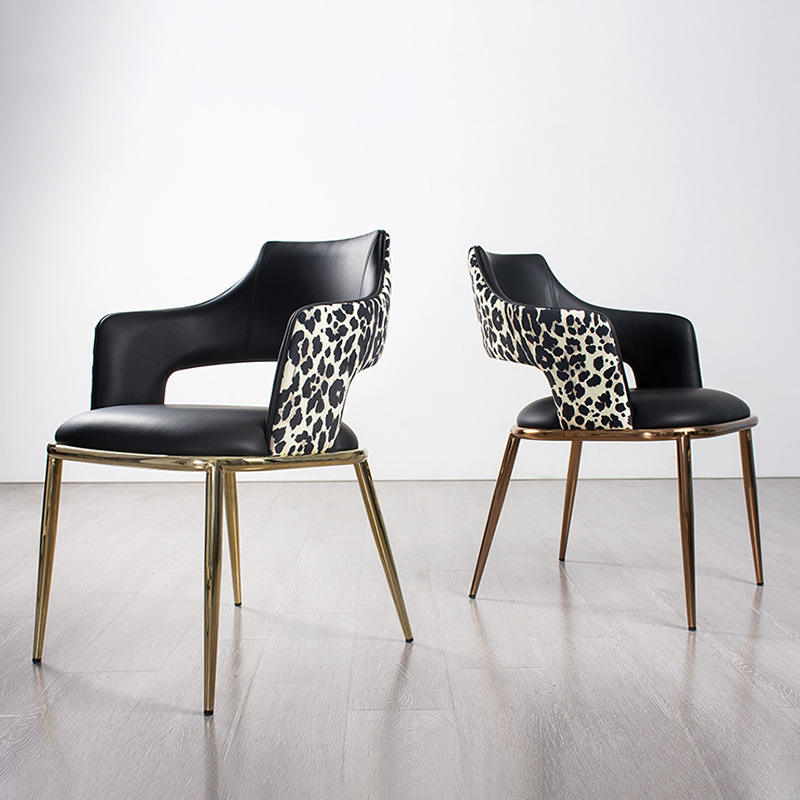 Silla de Comedor de Lujo Ligero Estilo Italiano MR, Silla de Acero Inoxidable de Alta Gama con Estampado de Leopardo, Silla Moderna para Villa, Hotel y Hogar