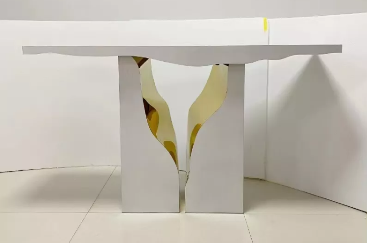 Mesa de Entrada de Metal Dorado de Lujo Italiano MR, Mesa de Consola de Diseño Único de Acero Inoxidable de Alta Gama