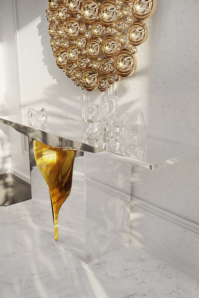 MR Luxury Glorious Mesa de consola pulida Mesa auxiliar moderna de acero inoxidable para el hogar Entrada Hotel Muebles de sala de estar