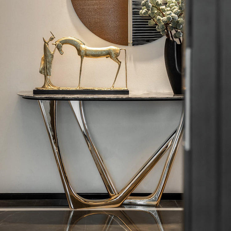 Mesa de consola MR de acero inoxidable de lujo, mesa auxiliar de mármol moderna de lujo para el hogar, Hotel, Villa, muebles de sala de estar