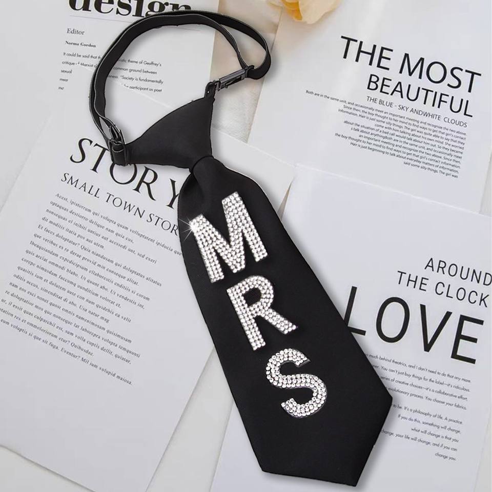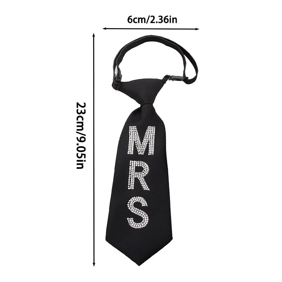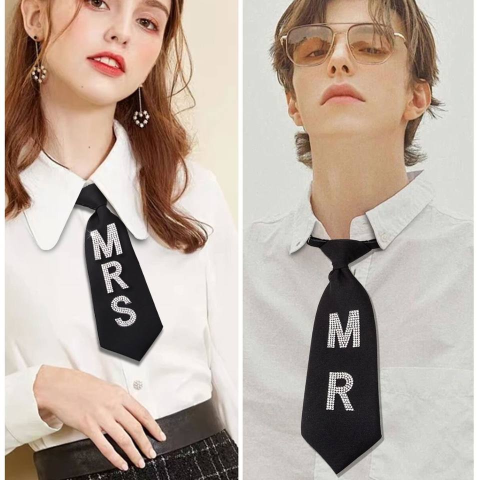 Corbata con Letras de Diamantes de Imitación MRS MR, Unisex, para Parejas, Corta, Ajustable, Estilo Preppy, para Adultos