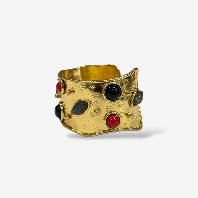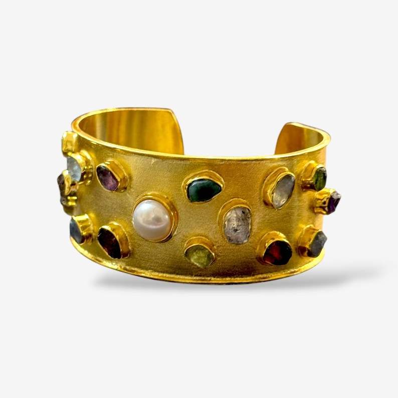 Brazalete Ancho de Latón Puro 100% Hecho a Mano con Diseño Floral Moderno de MS Handicraft, Brazalete Ajustable, Regalo para Mamá