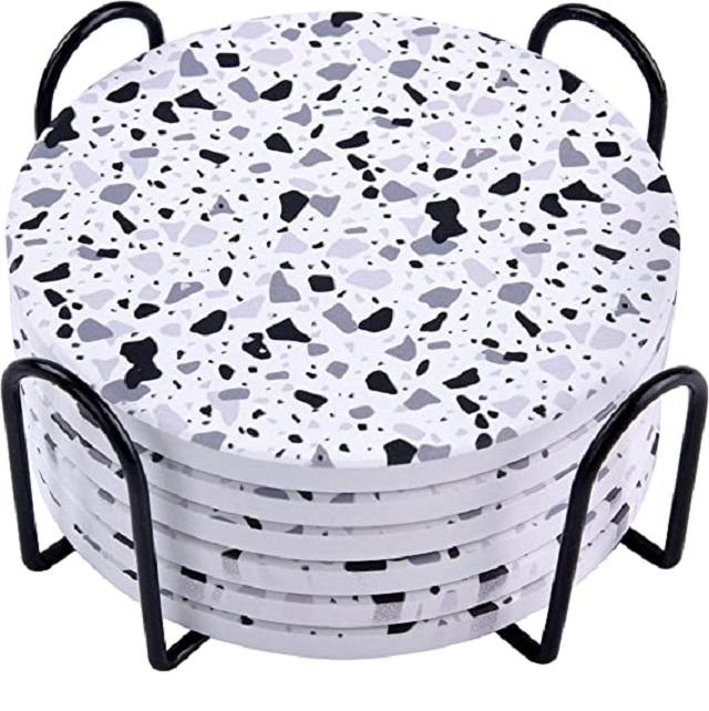 Posavasos de mármol con forma redonda, producto de vajilla de cocina MS, Juego de 4 Uds. Con soporte de hierro para té, café, taza, posavasos