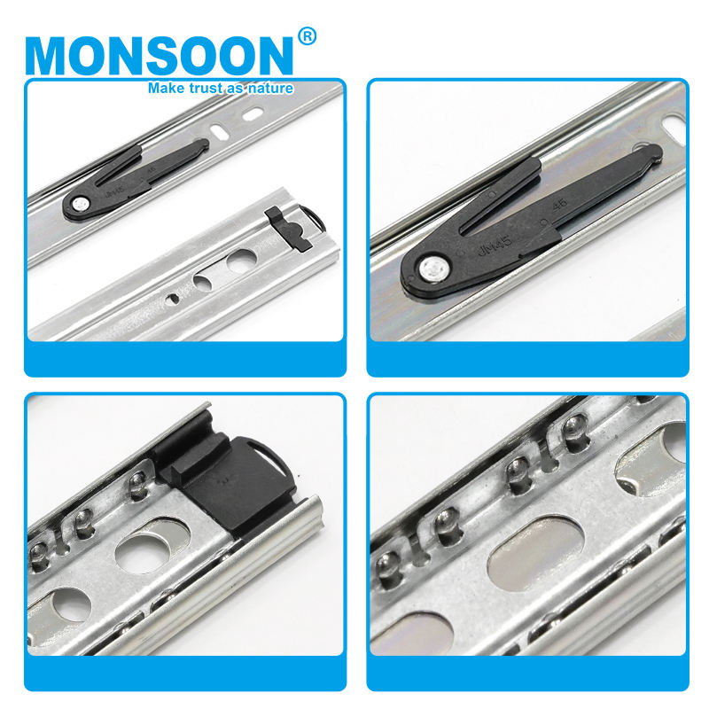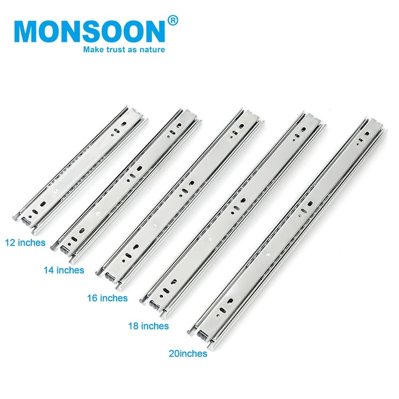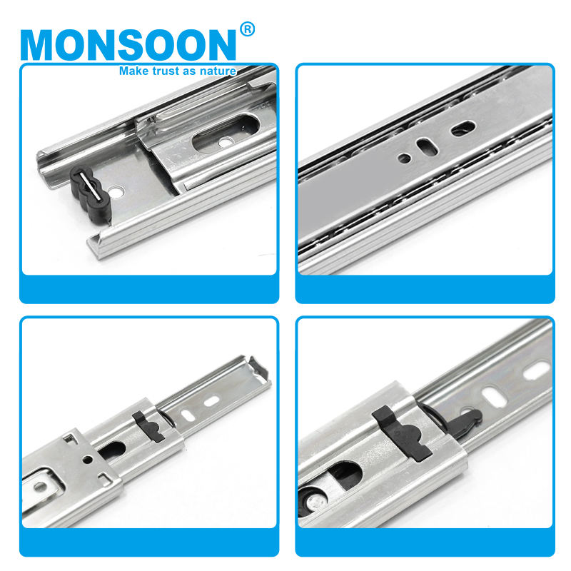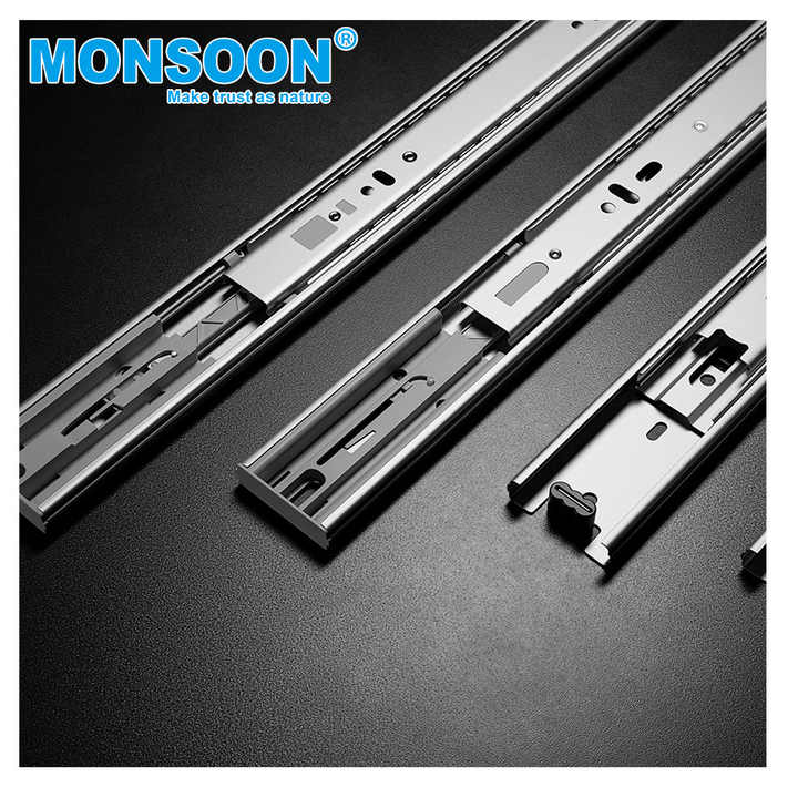 MS02 tobogán de rodamiento de bolas de extensión completa de 3 pliegues de acero inoxidable tobogán empotrado para accesorios de gabinete riel de cajón
