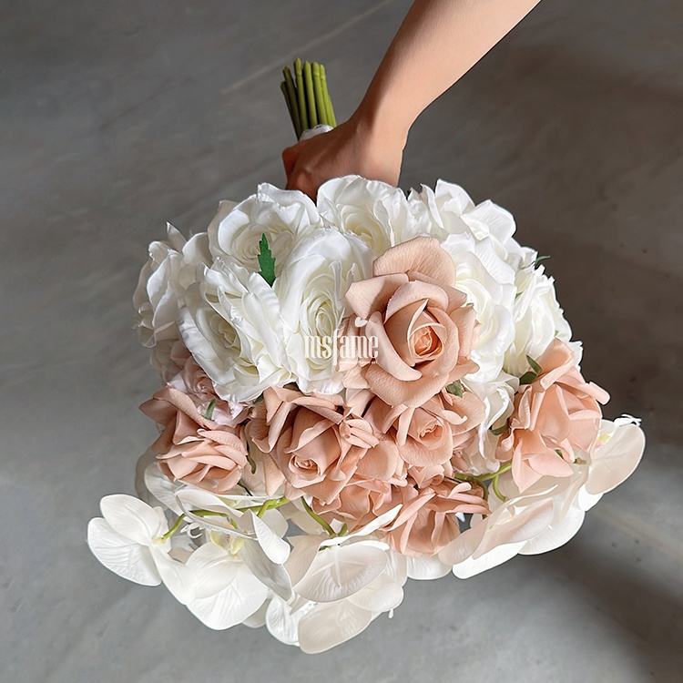 MSFAME Nuevo Personalizado Hecho a Mano de Alta Calidad Ramo de Boda Nupcial Real Touch Ramos de Rosas