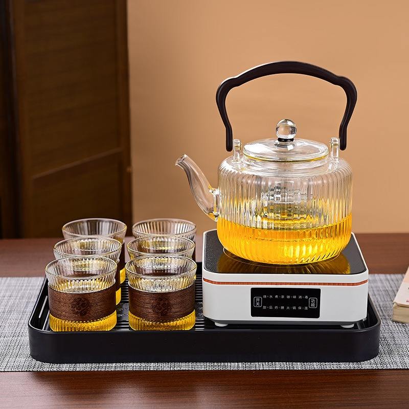 Descripción:Tetera de cristal resistente al calor, taza con la manga de madera