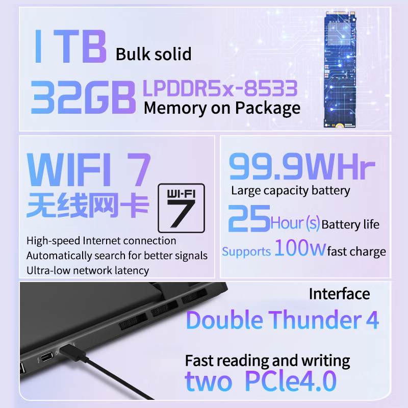 Batería:OLED-4K de 14 pulgadas/99.9WHr 25 horas de duración de la batería de larga duración-PD carga rápida