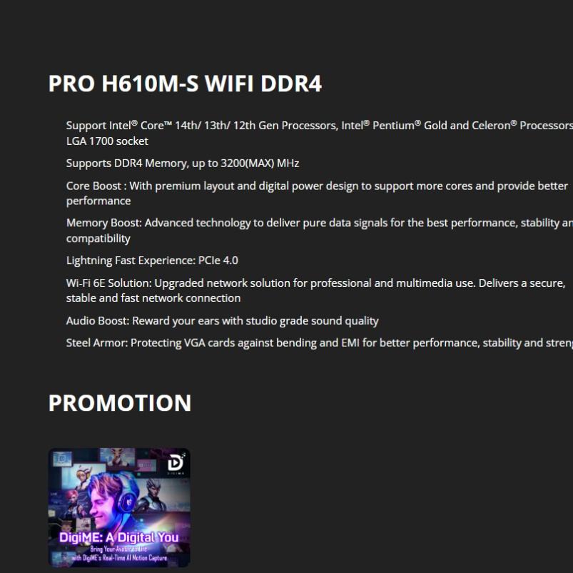 Nombre del producto:PRO H610M-S WIFI DDR4