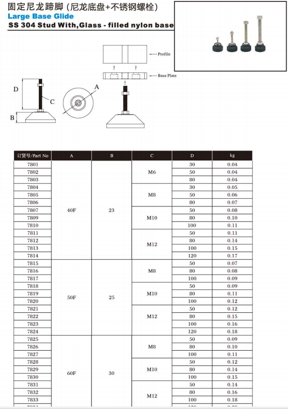 Nombre del producto:M6x30-40F base grande desliza nivelación pie base fija
