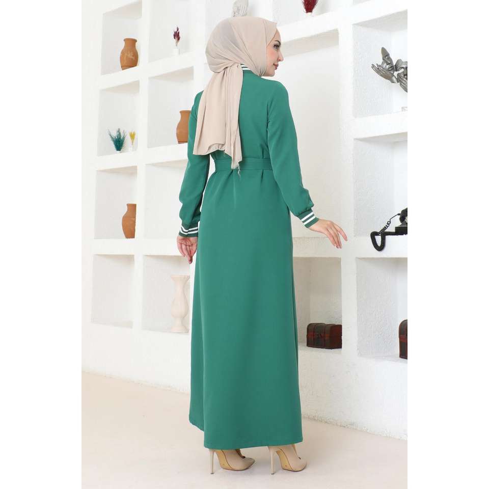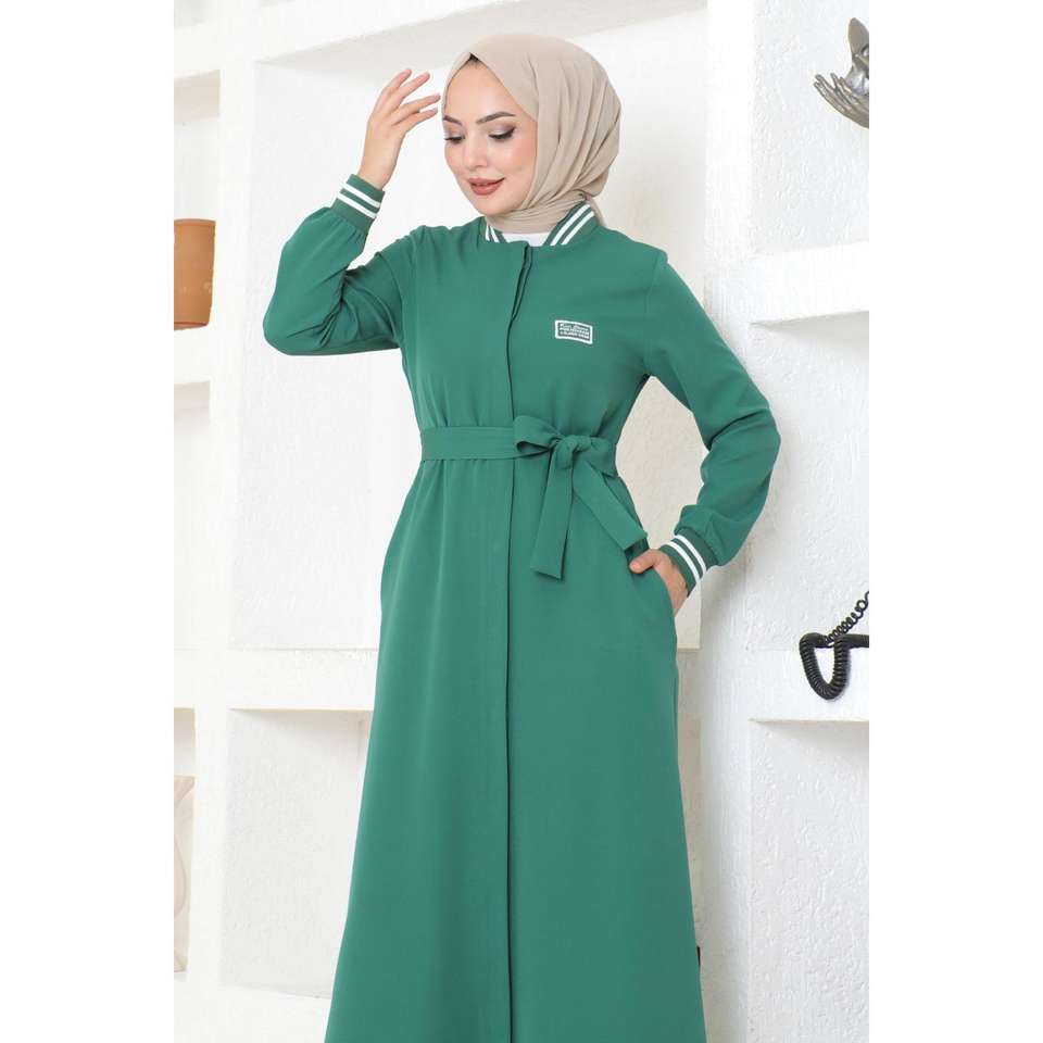 MSW19214-4 Abaya Acanalada con Botones Esmeralda, Abrigos, Chaquetas y Gabardinas Modestas
