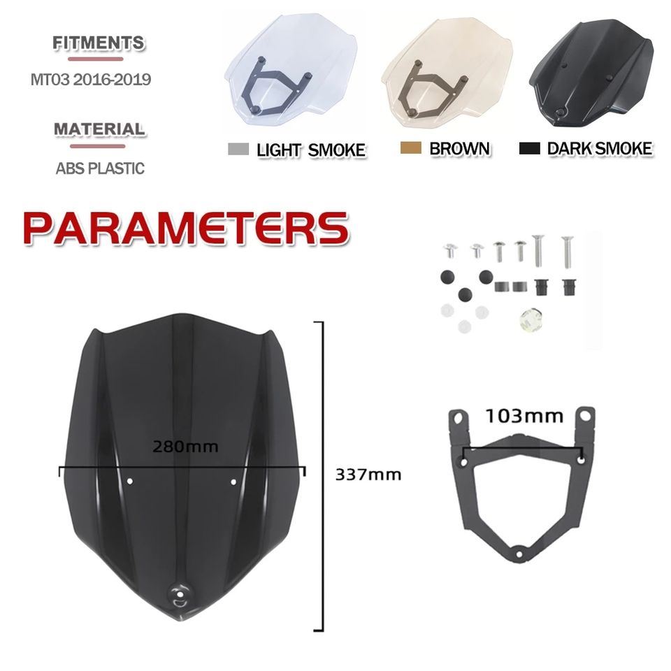 Parabrisas deportivo MT 03 con soporte para Yamaha MT-03, MT03, FZ-03, FZ03, 2016, 2017, 2018, 2019, MT25