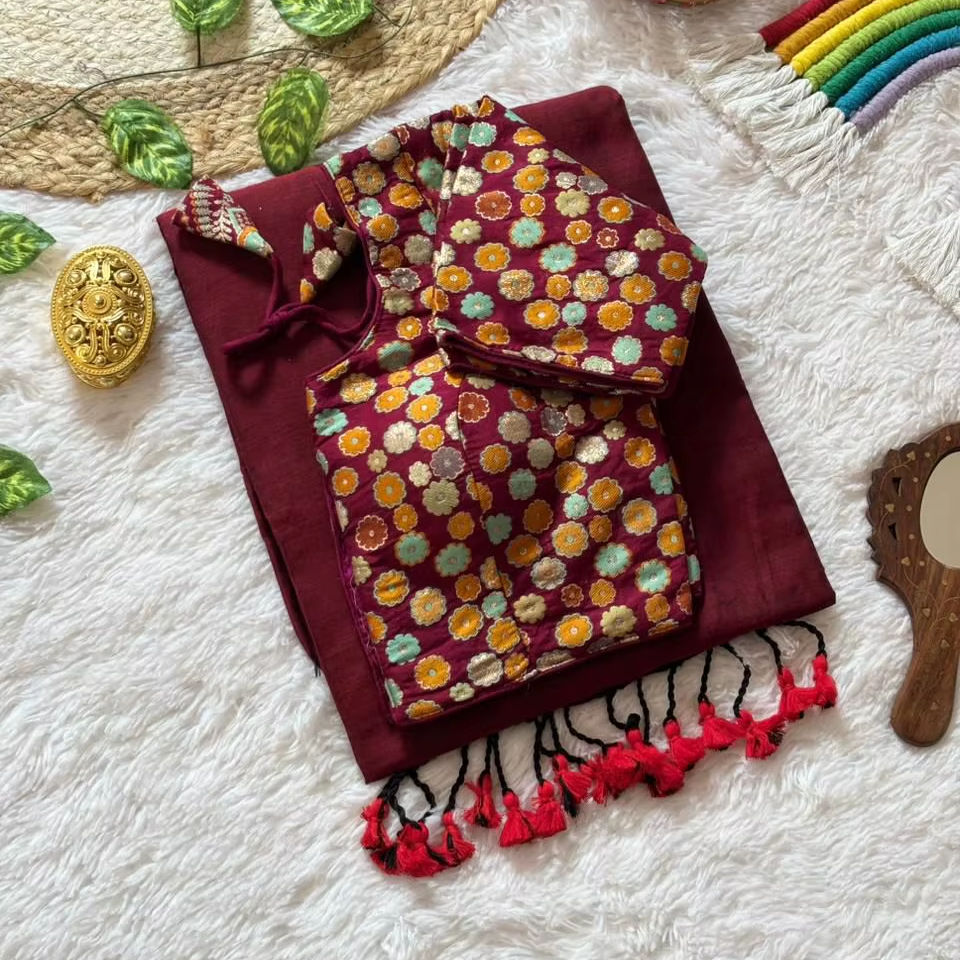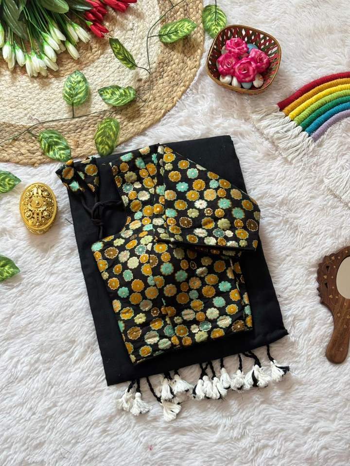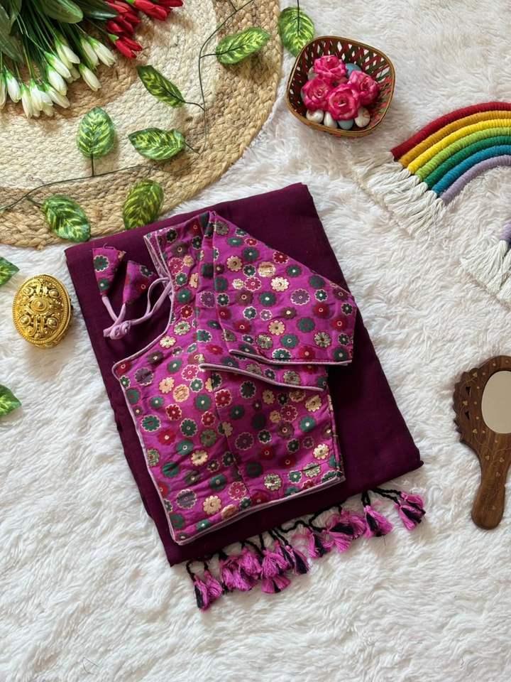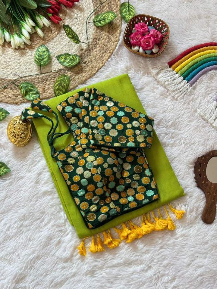 Sari de Algodón MULL, Gama Exclusiva, con Blusa Premontada, Georgette Sintético Floral Elástico y Ecológico