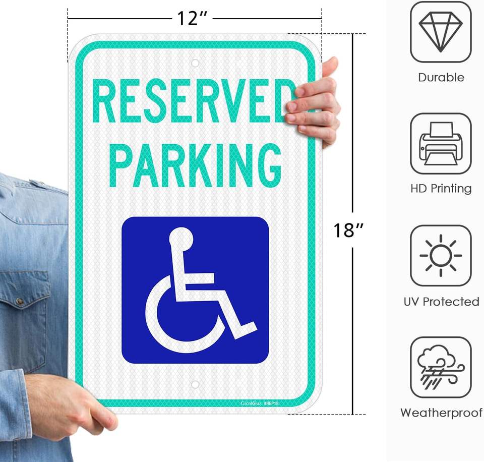 Señal de Estacionamiento Reservado para Discapacitados, Cumple con MUTCD, Señal de Estacionamiento Accesible de Aluminio Reflectante para Espacios Comerciales y Públicos