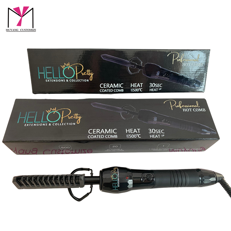 Juego de peines térmicos de color personalizado MUYANG, incluye herramientas térmicas, cortapelos, pinzas, bolsas de poliéster y etiquetas colgantes, bolsa de satén