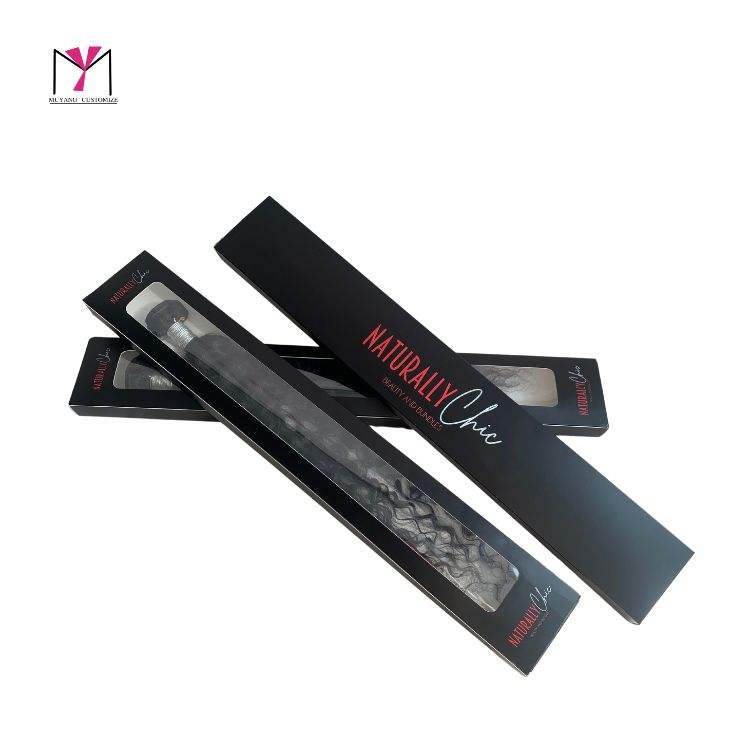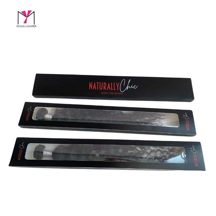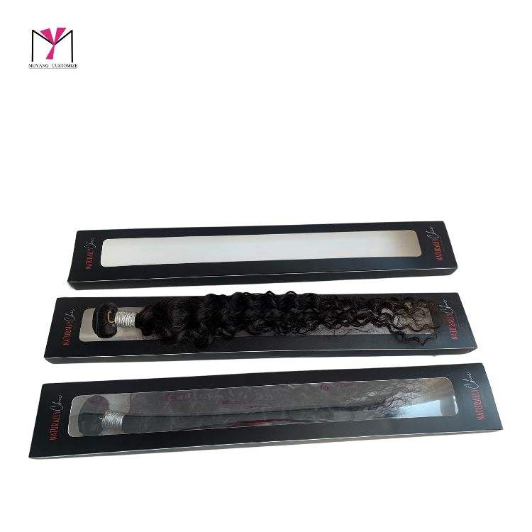 Caja para Extensiones de Cabello MUYANG con Logotipo Personalizado, Caja con Ventana, Empaque para Extensiones de Cabello Virgen, Caja de Papel Elegante