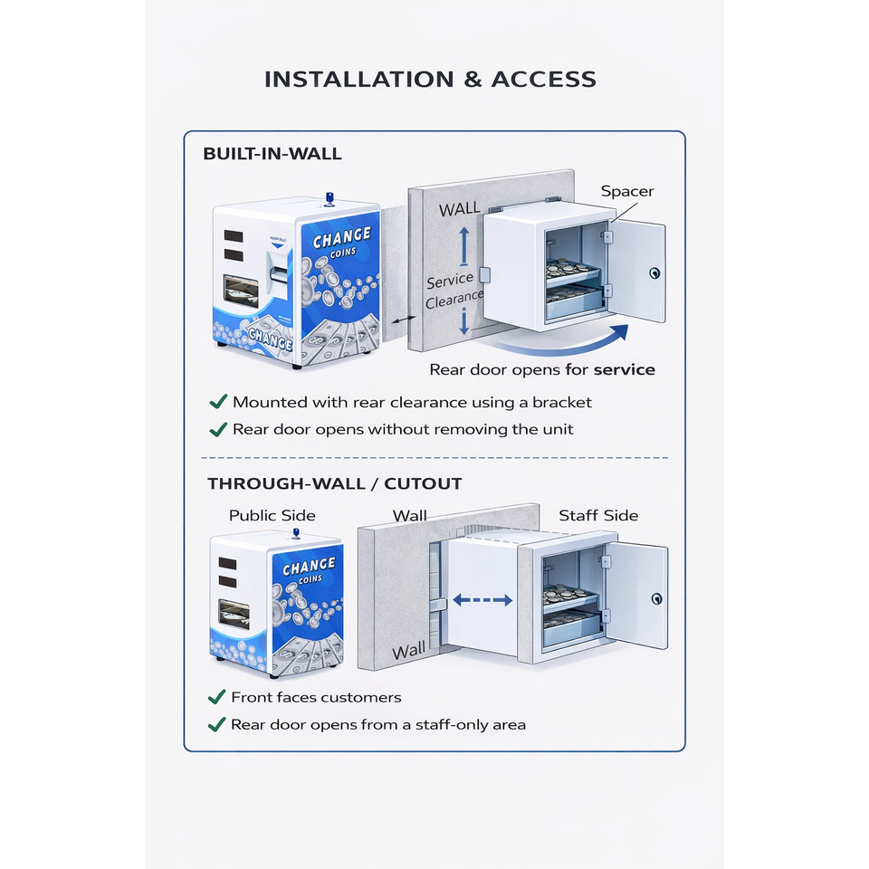 MV-101 BW Blanco, Cambiador de Monedas/Fichas Trasero, de Billetes a Monedas para Máquinas Recreativas