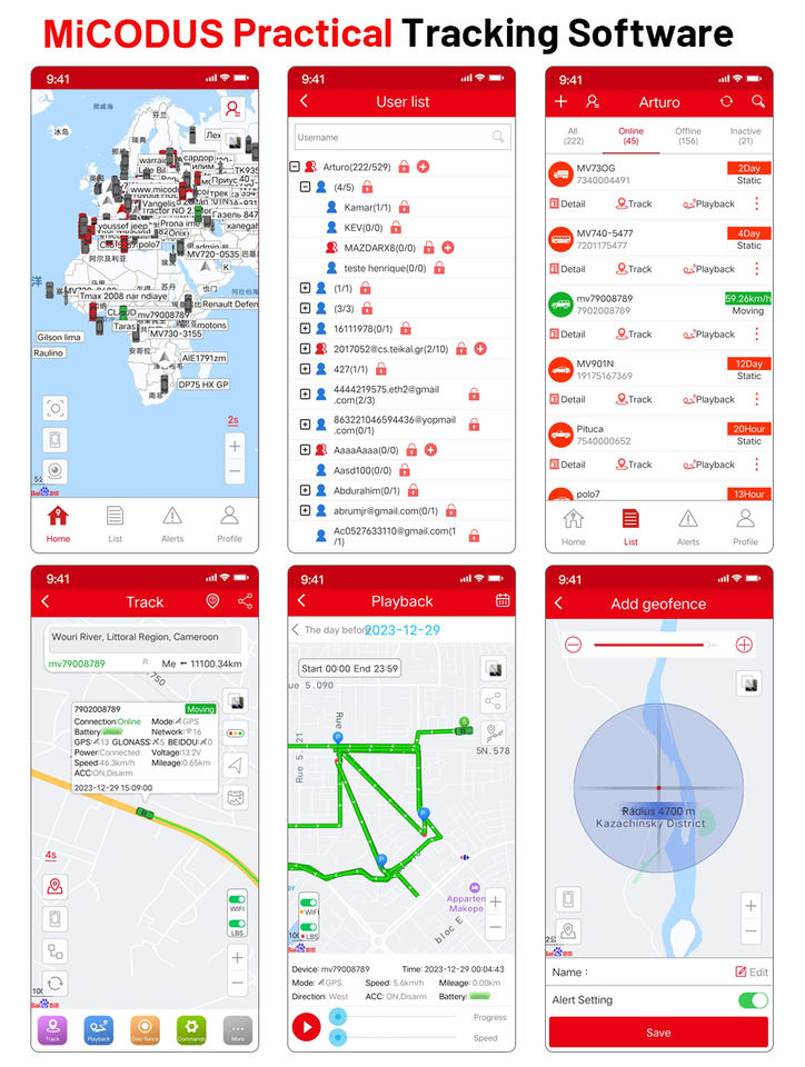 Anti-shock, vista de la calle, Detección del CAC, -Velocidad de alerta, Geovalla, Alarma antirrobo múltiple, Cortar el combustible de forma remota, Seguimiento en tiempo real, Reproducción de ruta histórica, Múltiples aspectos destacados del diseño, Voltaje de trabajo amplio 9-90V, Maneras de posicionamiento dual, Detección del voltaje de la batería del vehículo, Los datos de GPS Compens cornering, Firmware OTA, Alarma movimiento, Alarma de la vibración, Alarma de la remolque, Señal que atasca la detección