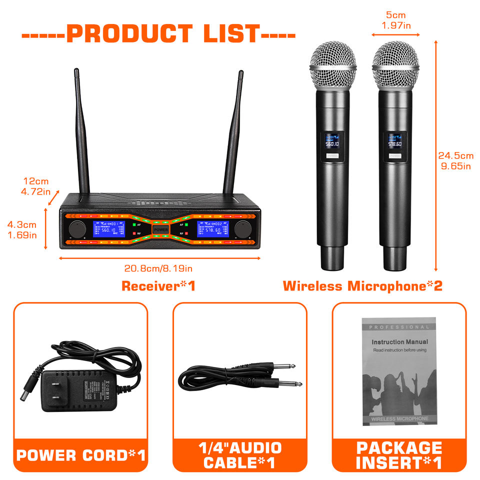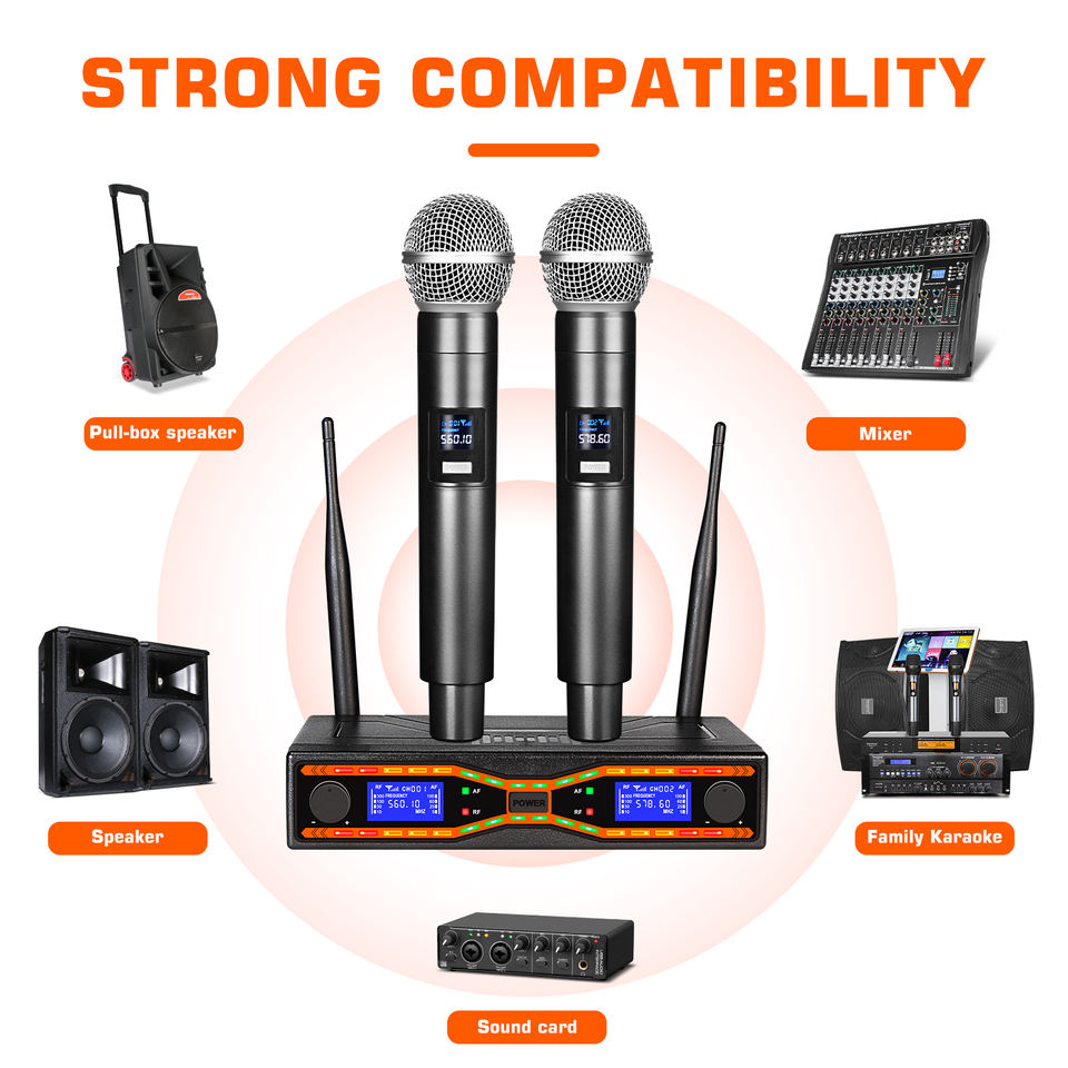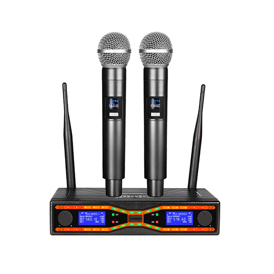 Micrófono Inalámbrico UHF MX-R42, Micrófono de Mano Dual, Rendimiento Profesional para Escenario, Plástico, Cancelación de Ruido, Ligero