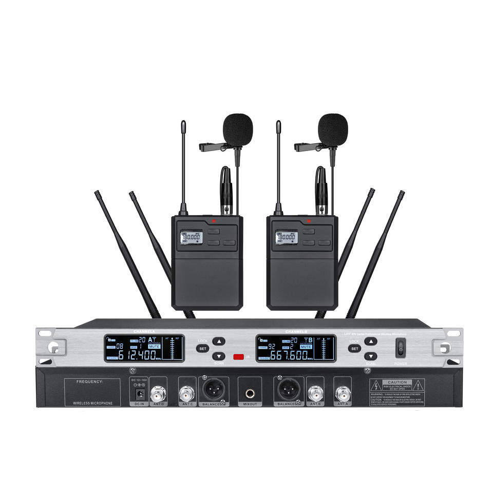 MY-3500 Lavalier FM Wireless Microphone 610-670MHz 2CH 200 Channel Auto IR Sync Noise Reduction Conference Teaching Speech